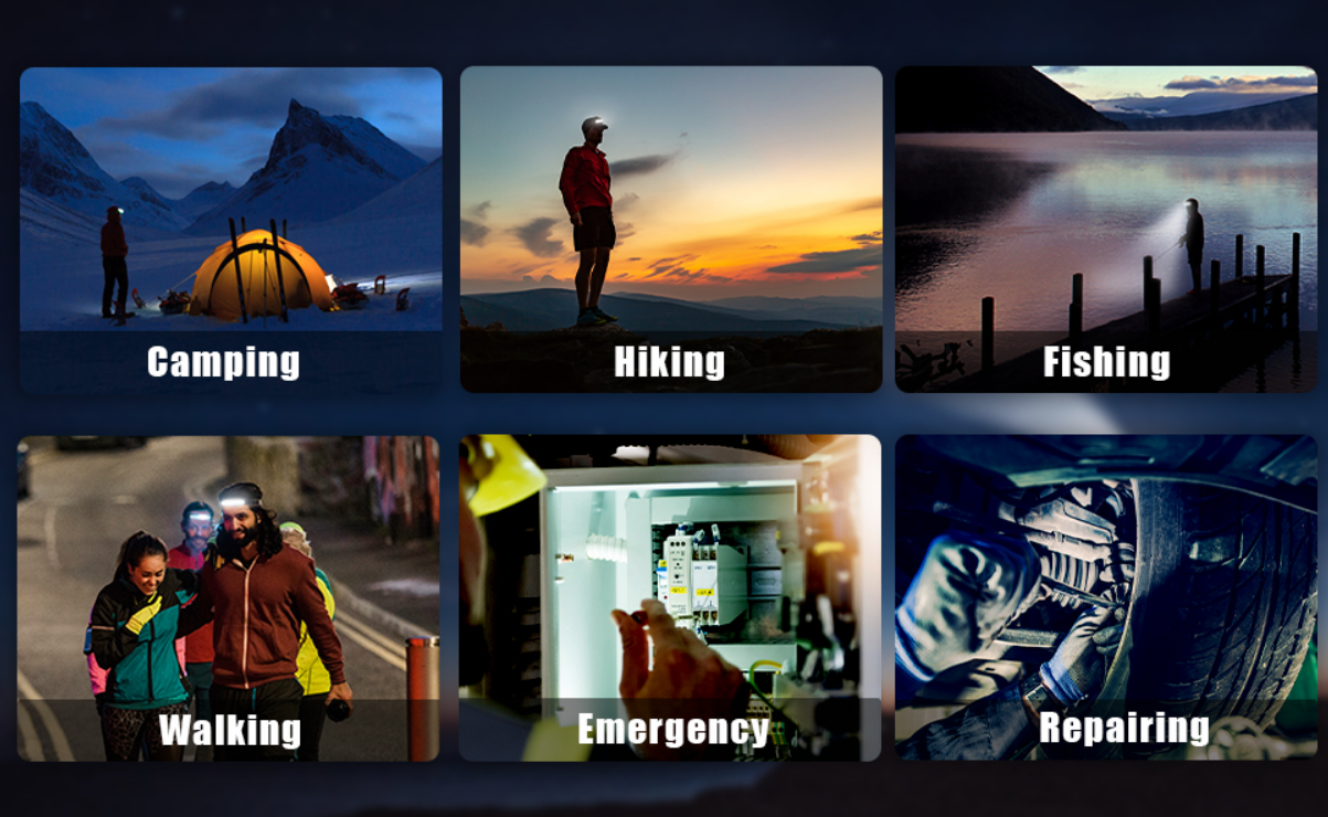 🌟 Versatile Usage Scenarios: Whether it's for early morning or nighttime activities, this head torch is an essential tool. It is perfect for kids, dog walking, rainy-day walks, photography, crafts, reading as a desk lamp, farm work, emergencies, running, exploring, camping, traveling, walking, mining, car repairs, and fishing.